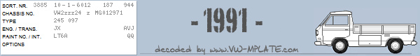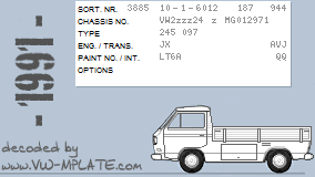 Chassis number VW2zzz24 z MG012971