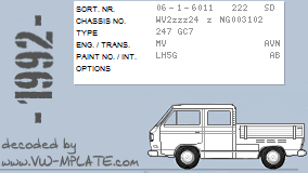 Type of transmission AVN - Manual 4-speed gearbox whith lockable differential (for Syncro model)