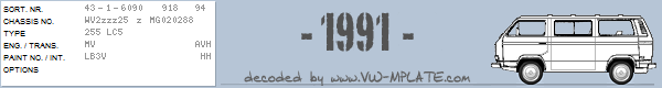 Type of engine MV - Wattercooled Flat 4 - 2109cc Digifant injection, 70 kW (95 bhp DIN)