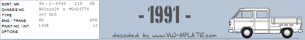 Chassis number WV2zzz24 z MG020774