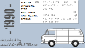Chassis number WV2zzz25 z LH025053