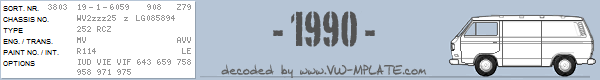 Type of engine MV - Wattercooled Flat 4 - 2109cc Digifant injection, 70 kW (95 bhp DIN)