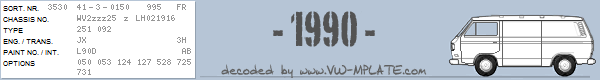 Chassis number WV2zzz25 z LH021916