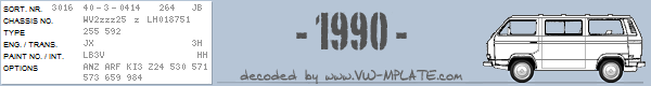 Chassis number WV2zzz25 z LH018751