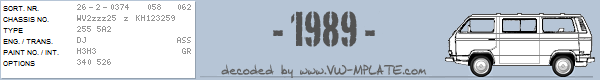 Chassis number WV2zzz25 z KH123259