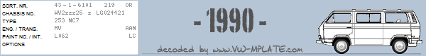 Type of engine MV - Wattercooled Flat 4 - 2109cc Digifant injection, 70 kW (95 bhp DIN)
