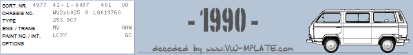 Chassis number WV2zb025 8 LG019760