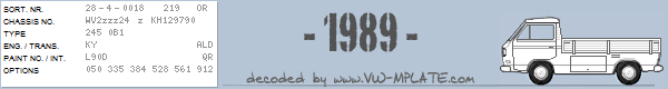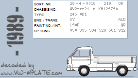 Chassis number WV2zzz24 z KH129790