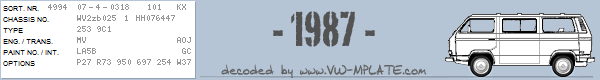 Type of engine MV - Wattercooled Flat 4 - 2109cc Digifant injection, 70 kW (95 bhp DIN)