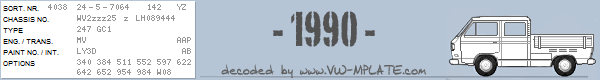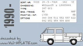 Chassis number WV2zzz25 z LH089444