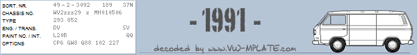 Chassis number WV2zzz29 z MH010506